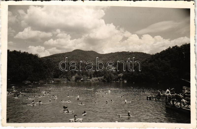 1941 Szováta-fürdő, Baile Sovata; Medve-tó, strand, fürdőzők / Lacul Ursu / lake, beach, bathers (EK)