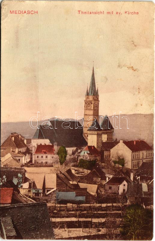 https://www.darabanth.com/en/432-Online-auction/432.0/Postcards/Transylvania~2000006/Medgyes-Mediasch-Medias-Teilansicht-mit-ev-Kirche-latkep-Evangelikus-templom-Fritz-Guggen~II2776752