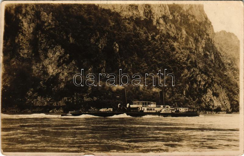 Orsova, DDSG "OESTERREICH" oldalkerekes gőzhajó a Kazán-szorosban / Cazan / sidewheeler steamship. photo (kis szakadás / small tear)