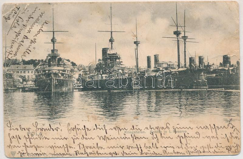 K.u.K. Kriegsmarine Schiffe in I. Reserve, Kriegshafen / Bastimenti in... https://www.darabanth.com/en/432-Online-auction/432.0/Postcards/Warships~2000025/KuK-Kriegsmarine-Schiffe-in-I-Reserve-Kriegshafen-Bastimenti-in-I-Riserva-Osztrak-Magyar-H~II2781423
