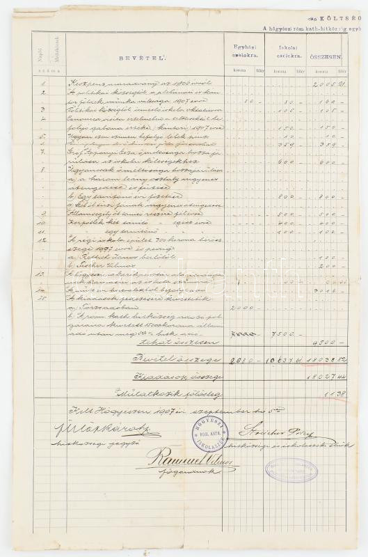 1907 Pécs, hőgyészi római katolikus iskola költségvetése