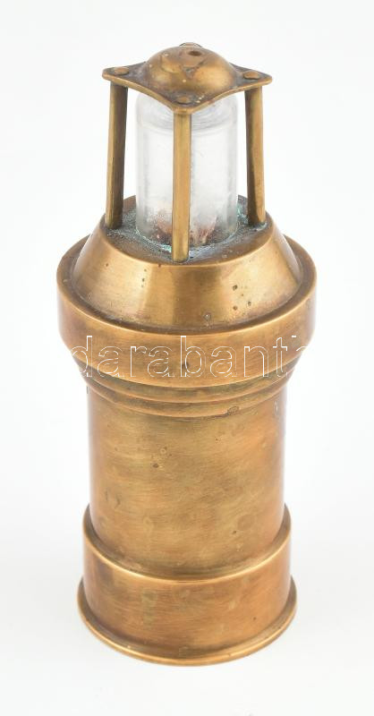 Régi réz lámpa, kopásnyomokkal, m: 11 cm