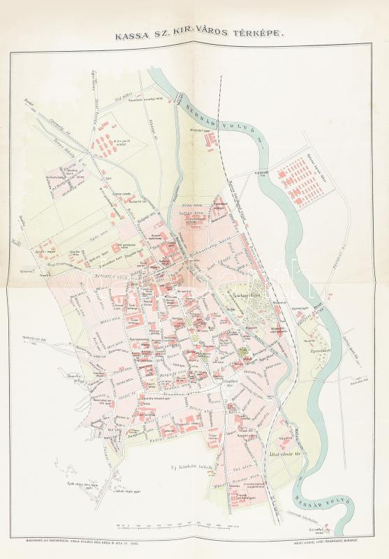 1913 Kassa sz. kir. város térképe, Lengyel Lipót térképészete, 46×31 c...
