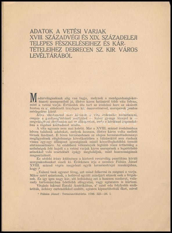 1941 Penyigey M. Dénes: Adatok a vetési varjak XVIII. századvégi és XI... https://www.darabanth.com/en/433-Online-auction/433.0/Books/Books-Gastronomy-and-Gardening~1000013/1941-Penyigey-M-Denes-Adatok-a-vetesi-varjak-XVIII-szazadvegi-es-XIX-szazadeleji-telepes-f~II2624281