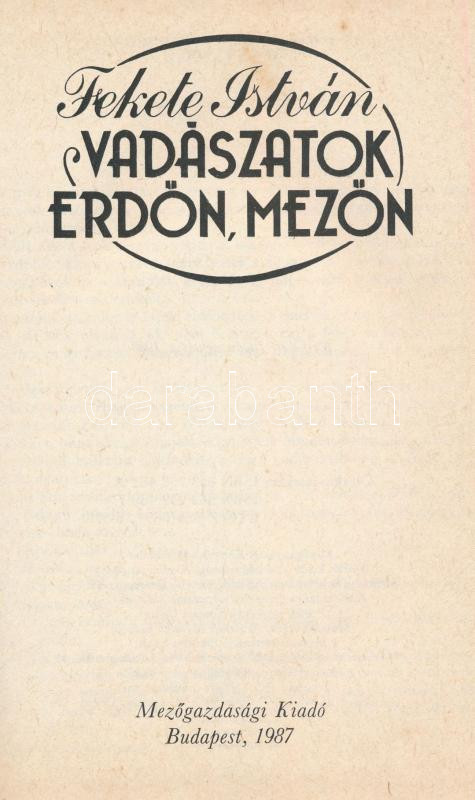 Fekete István: Vadászatok erdőn, mezőn. Bp., 1987, Mezőgazdasági Kiadó... https://www.darabanth.com/en/433-Online-auction/433.0/Books/Books-Hunting~1000014/Fekete-Istvan-Vadaszatok-erdon-mezon-Bp-1987-Mezogazdasagi-Kiado-Elso-kiadas-Kiado~II2792806