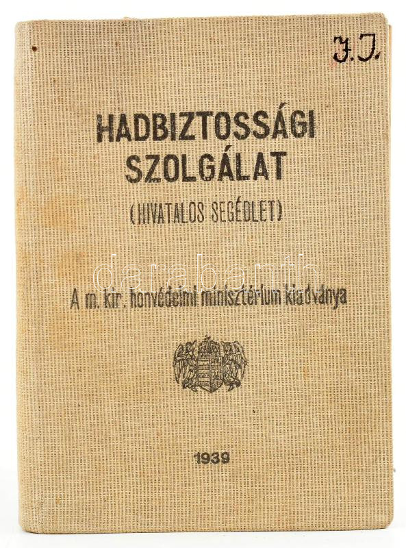 Hadbiztossági szolgálat. (Hivatalos segédlet). A M. Kir. Honvédelmi Minisztérium kiadványa. (Bp.), 1939, Turcsány-ny., 168 p. Mellékletekkel. Kiadói egészvászon-kötésben, tulajdonosi névbejegyzésekkel. (Jeney fhgy.)