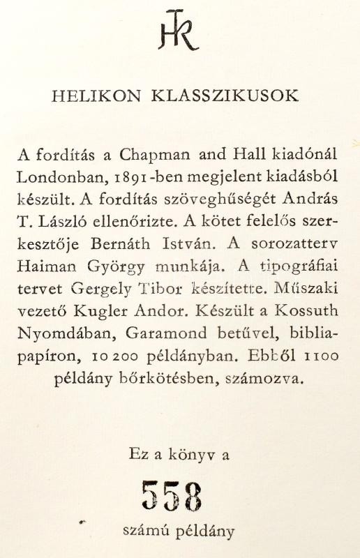 Charles Dickens: Kis Dorrit. Ford.: Bizám Lenke. Helikon Klasszikusok. Bp., 1967., Magyar Helikon. Kiadói aranyozott egészbőr-kötés. Számozott (558./1100) példány.