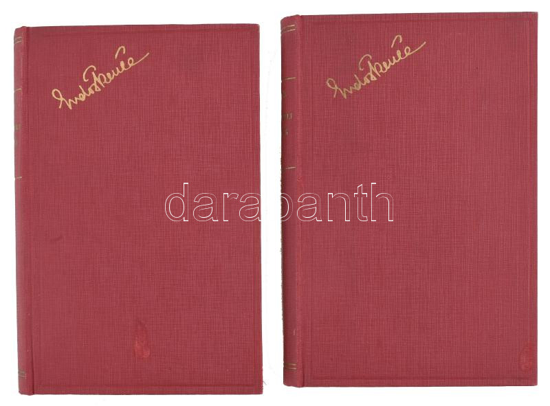Description: Erdős Renée: Brüsszeli csipke. I-II. köt. Az I. kötet a szerző által aláírt példány. Bp., én., Révai. Kiadói aranyozott egészvászon-kötés, a borítón kis kopásnyomokkal.
