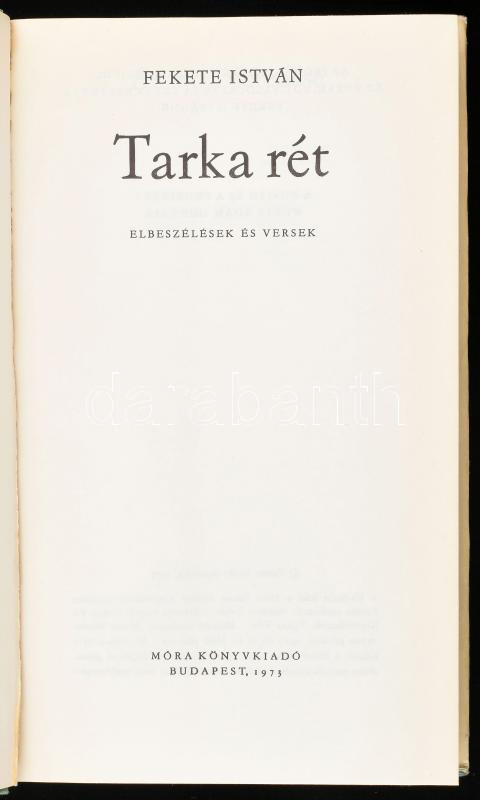 Fekete István: Tarka rét. Elbeszélések és versek. Vál. és szerk.: Feke... https://www.darabanth.com/en/433-Online-auction/433.0/Books/Books-Other-rarities~1000024/Fekete-Istvan-Tarka-ret-Elbeszelesek-es-versek-Val-es-szerk-Fekete-Istvanne-Bp-197~II2791439