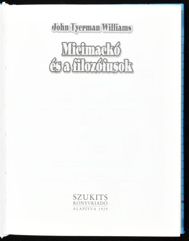John Tyerman Williams: Micimackó és a filozófusok. Ford.: Kovács Petra. Bp., 2004, Szukits. Kiadói kartonált papírkötés.