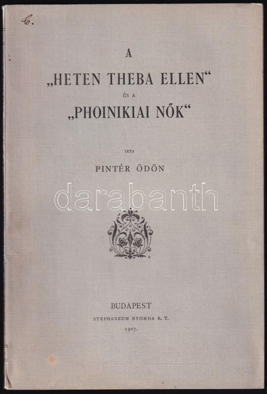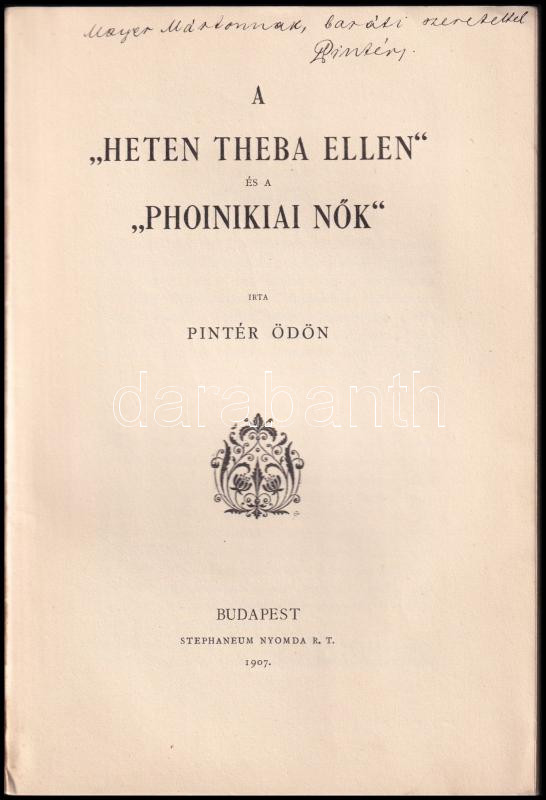 Pintér Ödön: A " Heten Theba ellen " és a " Phoinikai nők ". A szerző által DEDIKÁLT példány. Bp., 1907, Stephaneum Nyomda. Kiadói papírkötés
