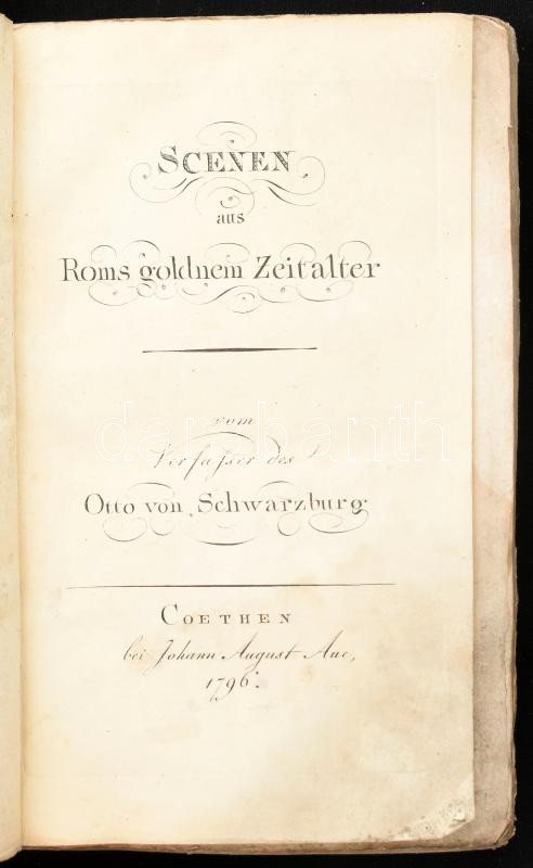 Schwarzburg, Otto von: Scenen aus Roms goldnem Zeitalter. Coethen (Köt... https://www.darabanth.com/en/433-Online-auction/433.0/Books/Books-Other-rarities~1000024/Schwarzburg-Otto-von-Scenen-aus-Roms-goldnem-Zeitalter-Coethen-Kothen-1796-Johann-August-Aue~II2795343