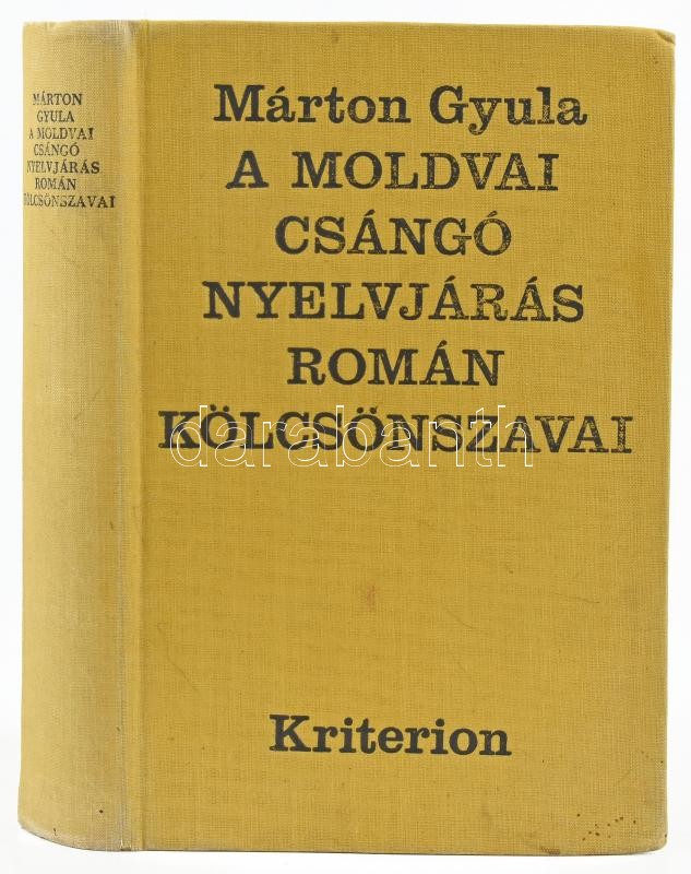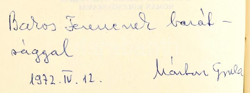 Márton Gyula: A moldvai csángó nyelvjárás román kölcsönszavai. Bukarest, 1972, Kriterion, 600 p. Kiadói egészvászon-kötés. DEDIKÁLT A szerző, Márton Gyula (1916-1976) erdélyi magyar nyelvész által Dr. Bakos Ferenc (1922-1996) nyelvész, egyetemi docens, a nyelvtudományok nagydoktora részére dedikált példány. Dr. Bakos Ferenc, a magyar-román nyelvi kapcsolatok neves kutatójának autográf jegyzeteivel, kiegészítéseivel!