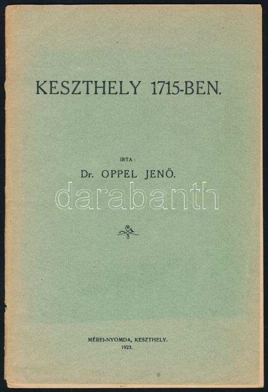 Oppel Jenő, Dr.: Keszthely 1715-ben. Keszthely, 1923., Mérei-ny., 25+2 p. Kiadói papírkötés, az elülső borító leszakadt.