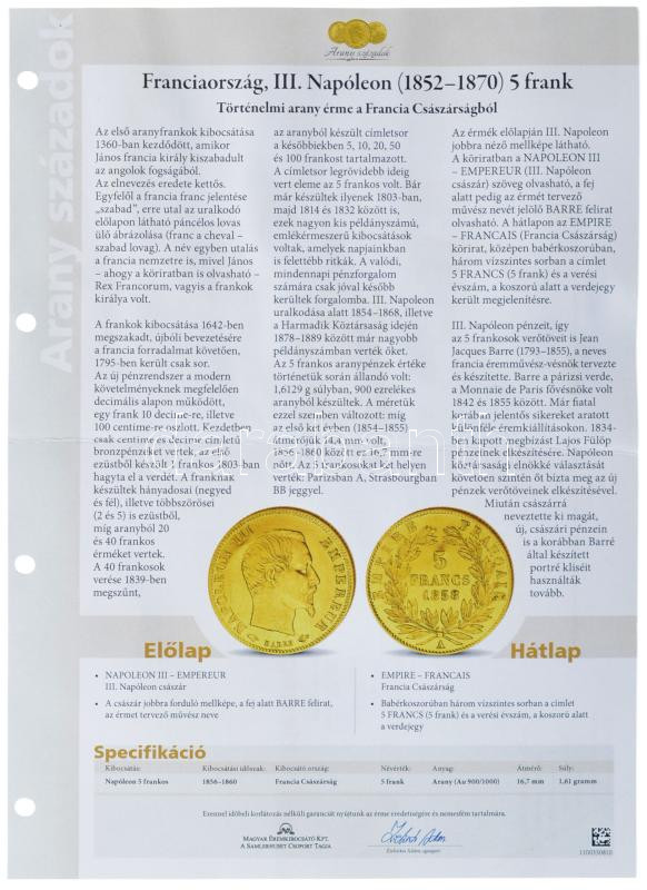 Franciaország / Második Császárság 1860BB 5Fr Au "III. Napóleon&q... https://www.darabanth.com/en/433-Online-auction/433.0/Numismatics/Gold-coins-and-commemorative-medallions~2000009/Franciaorszag-Masodik-Csaszarsag-1860BB-5Fr-Au-III-Napoleon-kapszulaban-tanusitvanny~II2790321