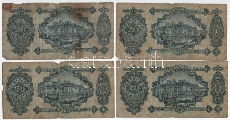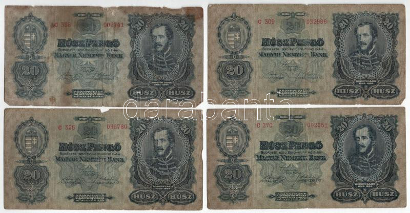 1930. 20P (4x) T:III,III- Hungary 1930. 20 Pengő (4x) C:F,VG Adamo P11