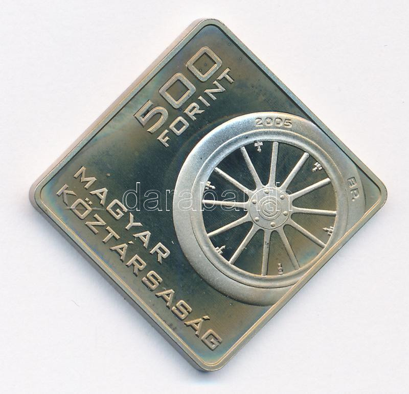 https://www.darabanth.com/en/433-Online-auction/433.0/Numismatics/Hungarian-coins-and-coins-with-Hungarian-mint-marks~2000014/2005-500Ft-100-eves-az-elso-magyar-postaauto-TPP-patina--Adamo-EM197~II2792708
