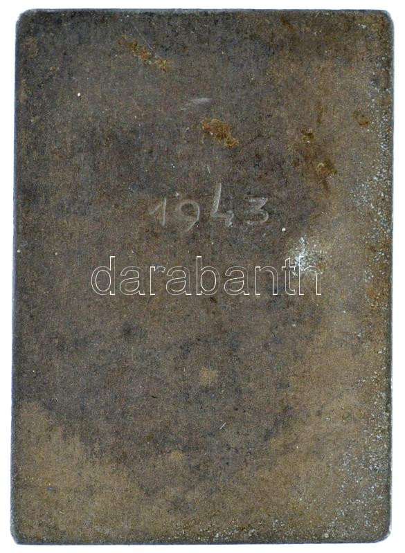 1919. "Műegyetemi Lövészegyesület 1919" egyoldalas, hadifém sportplakett, hátoldalon gravírozva "1943". Szign.: Szoboszlay (44x31mm) T:1- korr.