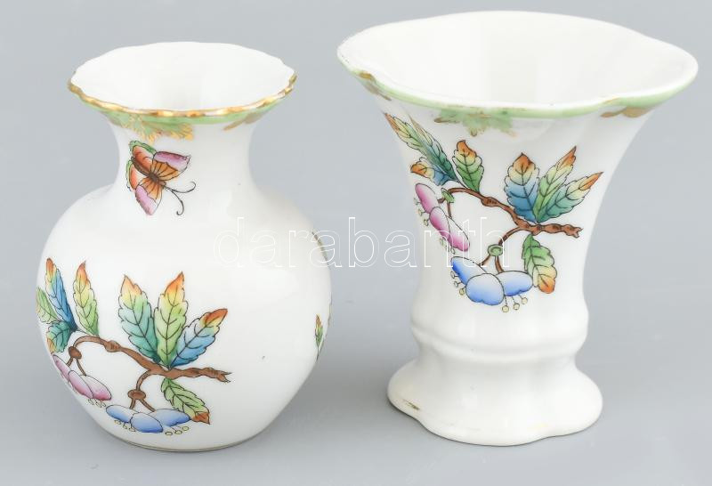 2db Herendi Viktória mintás vázácska. Kézzel festett, jelzett, kis kop...