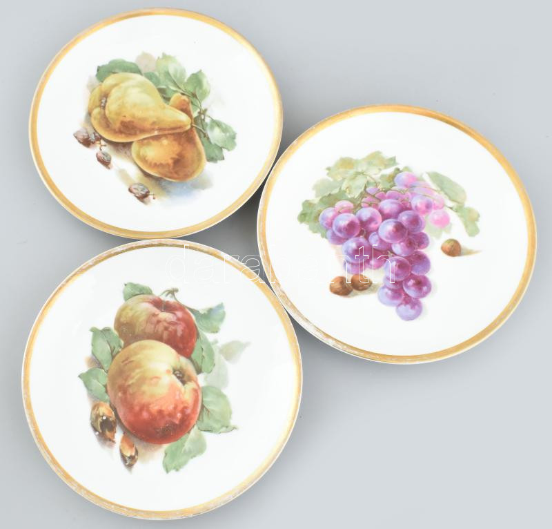 3 db Carl Tielsch Altwasser német porcelán tányér gyümölcsös mintával,...