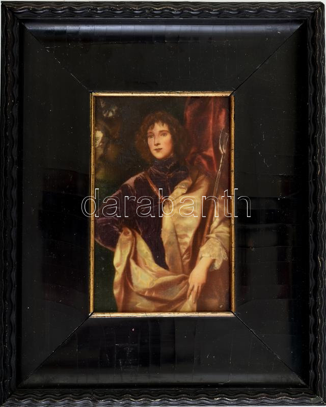 Jelzés nélkül: Előkelő ifjú. Porcelán kép, Keretben 14x9 cm