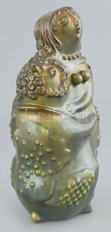 Zsolnay Török János terv: Ördög és lánya. Eozin mázas porcelánfajansz. Jelzett. 1960-70 körül. A lány hajánál, kis lepattanás. m: 22,5 cm