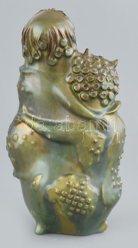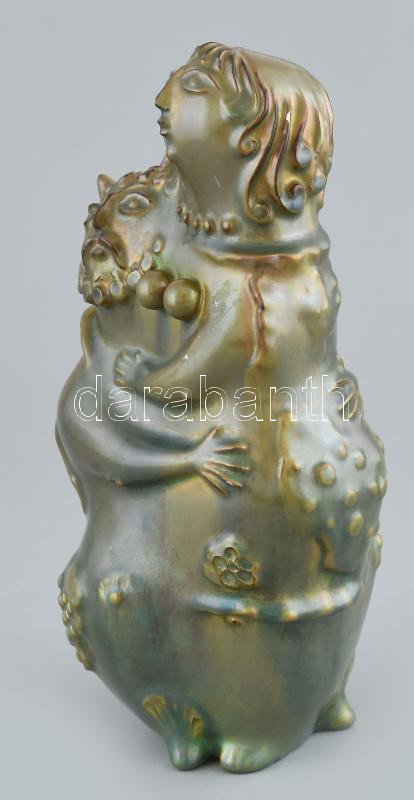Zsolnay Török János terv: Ördög és lánya. Eozin mázas porcelánfajansz....