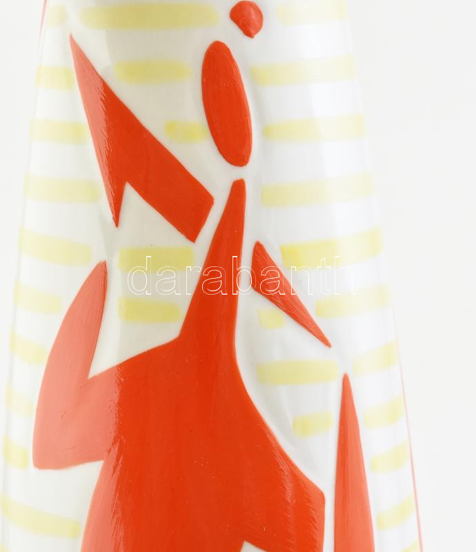 Zsolnay díszváza. Formába öntött porcelán. Felületén színesen festett táncoló, zenélő alakok. Török János modellje, 1960. Alján jelzett: zölddel bélyegzett márkajel. Zsolnay-gyár, (Pécsi Porcelángyár), 1960-as évek. M.: 40,5 cm Irodalom: Kovács Orsolya: Zsolnay modern, 1953-1990. Pécs, 2020., 110. oldal.