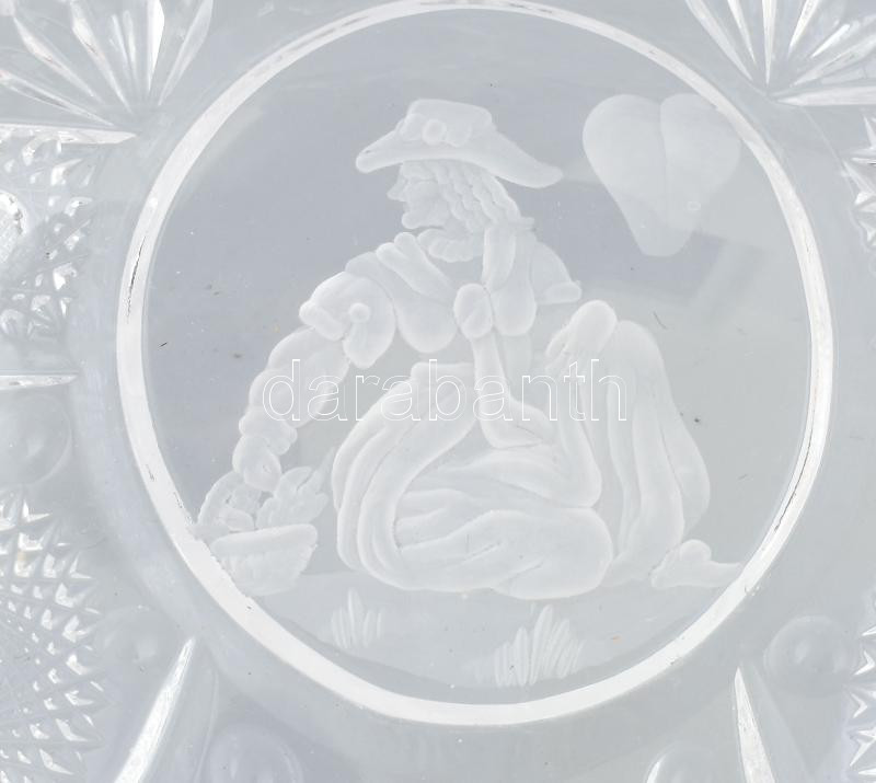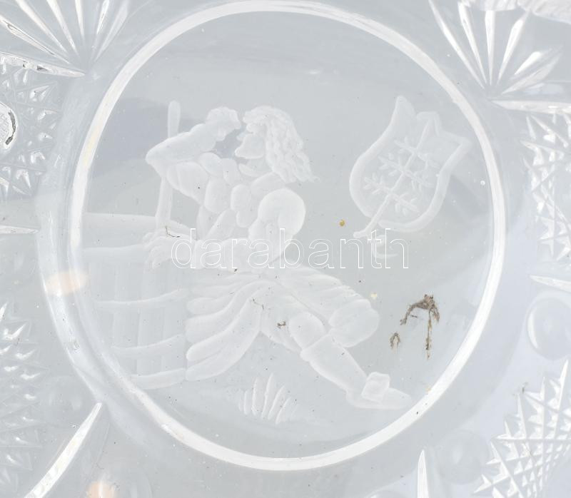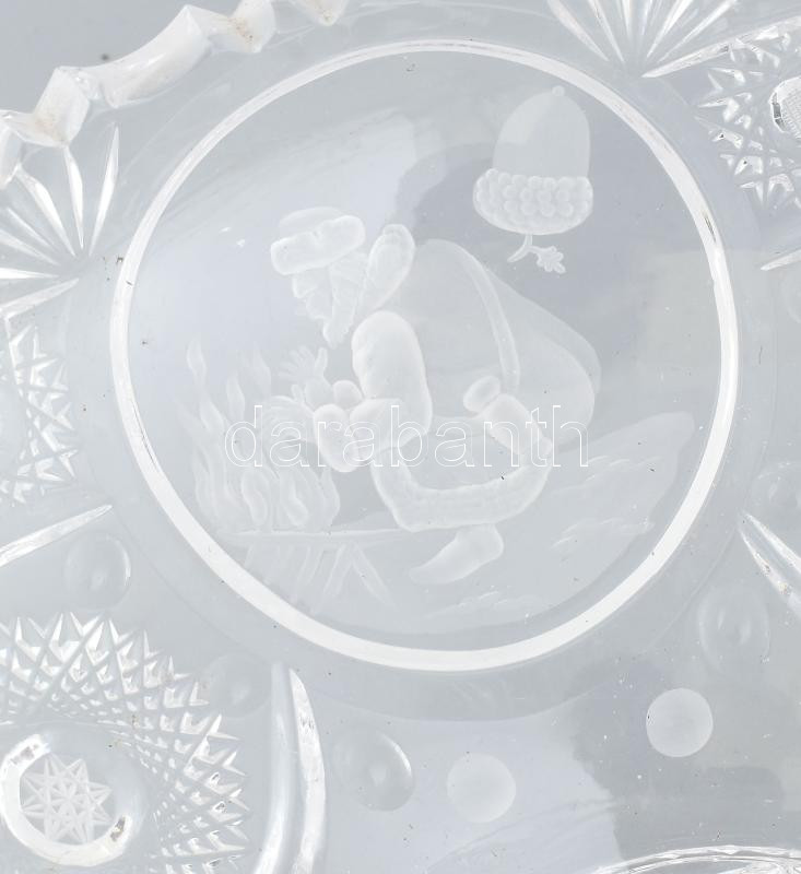 Kristály kínáló tál, magyar kártyamintás gravírozásokkal, hibátlan, d:...