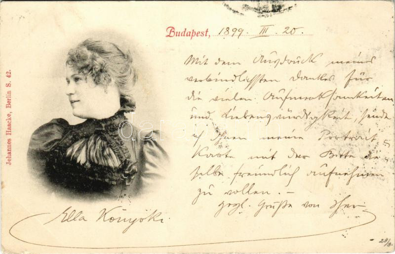 1899 (Vorläufer) Könyöki Ella, Budapest. Johannes Haecke kiadása (apró...