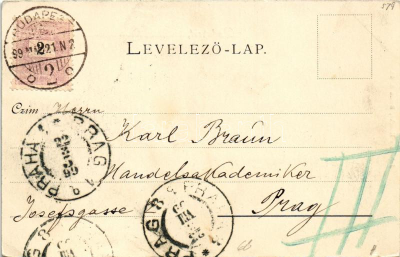 1899 (Vorläufer) Könyöki Ella, Budapest. Johannes Haecke kiadása (apró szakadás / tiny tear)
