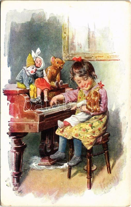 Kislány a zongoránál játékokkal / Girl with toys at the piano. B.K.W.I. 480-4. s: K. Feiertag (fl)
