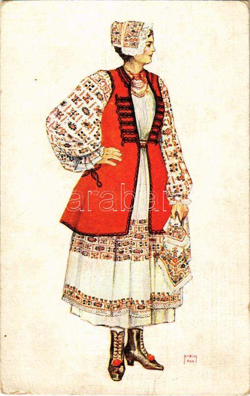 Sziszek, Sisak, Sissek; Horvát népviselet, fiatal parasztlány. Drava / Hrvatske Narodne Nosnje / Croatian folklore s: Kirin (EK)