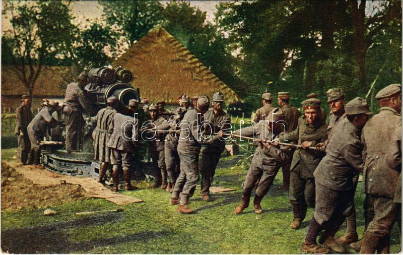 Description: Der europäische Krieg 1914/15. Wirklichkeitsbilder vom Kriegsschauplatz Nr. 118. Aufstellen eines österreichischen 30,5 cm Mörsers / WWI Austro-Hungarian K.u.K. military, mortar cannon / ElsÅ‘ világháborús osztrák-magyar katonák egy mozsár ágyú felállÃtása közben