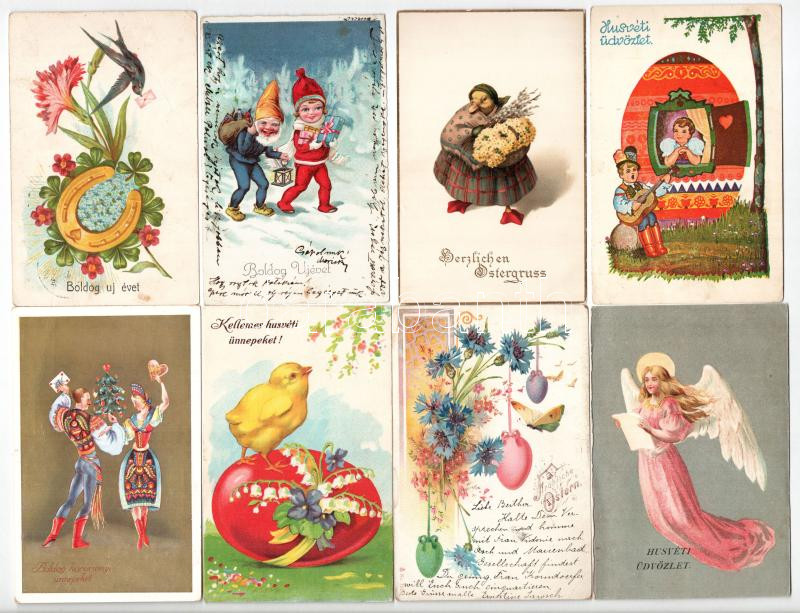 46 db RÉGI ünnepi üdvözlő motívum képeslap vegyes minőségben / 46 pre-1945 greeting motive postcards in mixed quality