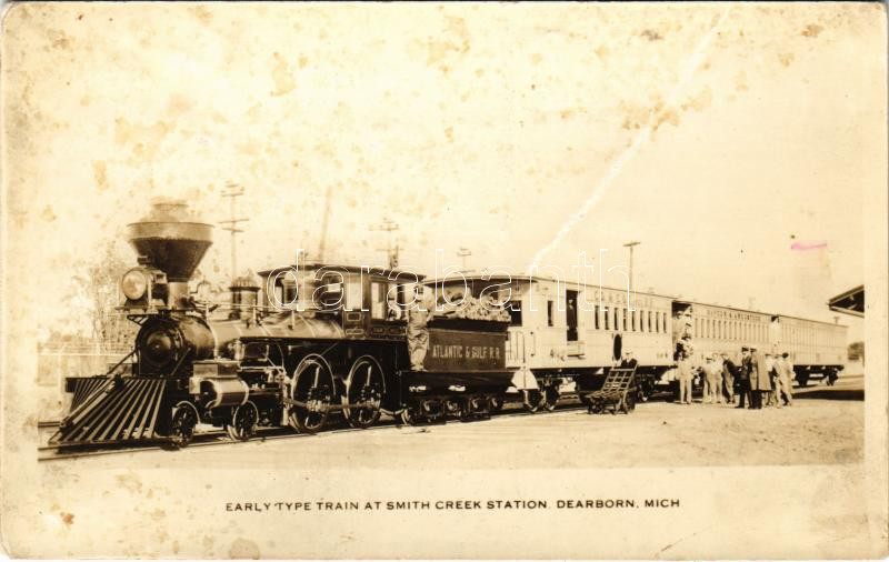 https://www.darabanth.com/en/433-Online-auction/433.0/Postcards/Railway~1500095/Dearborn-Michigan-early-type-train-at-Smith-Creek-Station-locomotive-Sam-Hill-Atlantic-Gulf-~II2792970