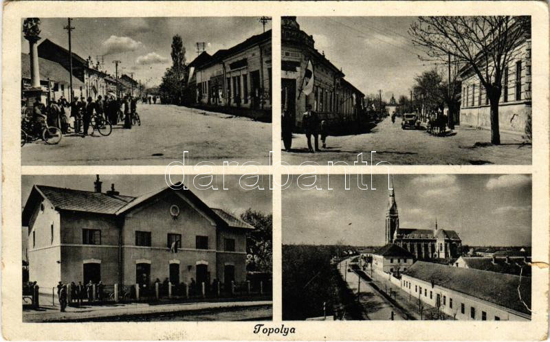1941 Topolya, Bácstopolya, Backa Topola; vasútállomás, magyar zászló, ... https://www.darabanth.com/en/433-Online-auction/433.0/Postcards/Vojvodina~1500011/1941-Topolya-Bacstopolya-Backa-Topola-vasutallomas-magyar-zaszlo-kerekparosok-templom-~II2789581
