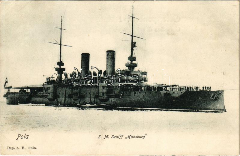 Pola, SMS Habsburg az Osztrák-Magyar Haditengerészet Habsburg-osztályú... https://www.darabanth.com/en/433-Online-auction/433.0/Postcards/Warships~1500042/Pola-SMS-Habsburg-az-Osztrak-Magyar-Haditengereszet-Habsburg-osztalyu-pre-dreadnought-csatahajC3~II2790412