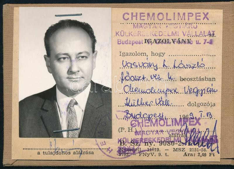 1969 Chemolimpex Vállalat arcképes igazolványa