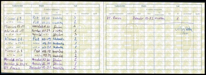 2003 Vadász lőjegyek