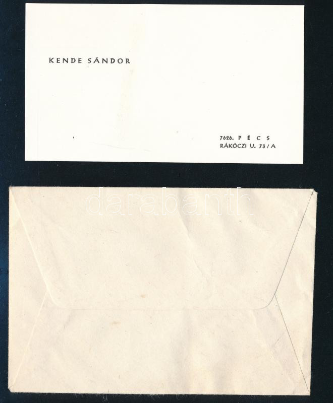cca 1970 Kende Sándor (1918-1992) író, költő saját kézzel írt és aláírt köszönőlevele névjegykártyáján, borítékjában