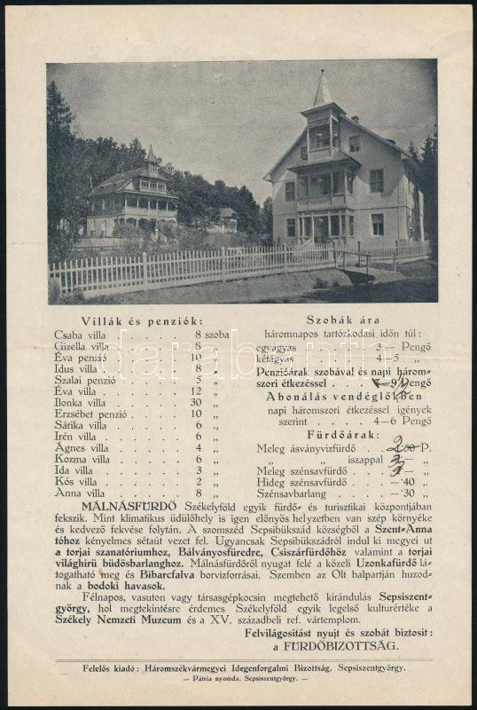 cca 1940-1945 Mánásfürdő, kétoldalas ismertető