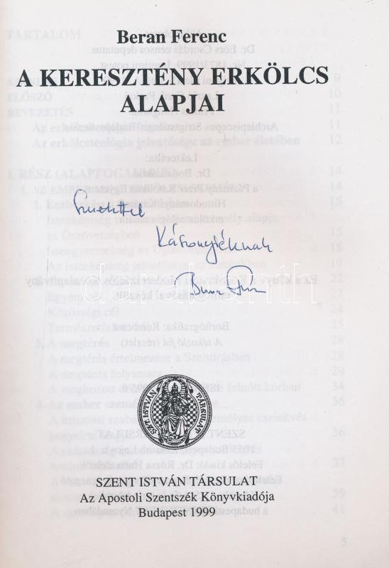 Beran Ferenc: A keresztény erkölcs alapjai. A szerző által DEDIKÁLT példány. Bp., 1999., Szent István-Társulat. Kiadói papírkötés.