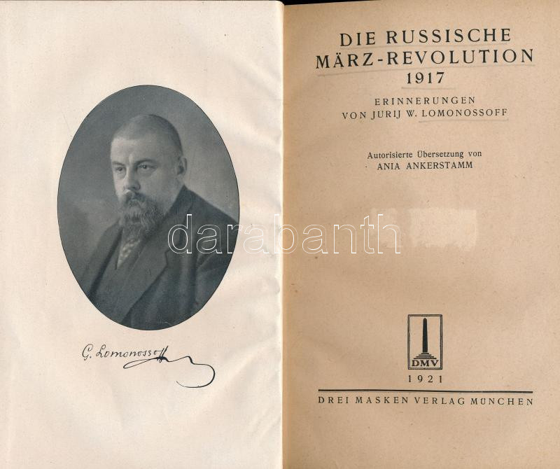 Jurij W. Lomonossoff: Die russische März-Revolution 1917. Erinnerungen... https://www.darabanth.com/en/434-Online-auction/434.0/Books/Books-History~1000008/Jurij-W-Lomonossoff-Die-russische-Marz-Revolution-1917-Erinnerungen-von-Jurij-W-Lomonossoff-MC3~II2807980