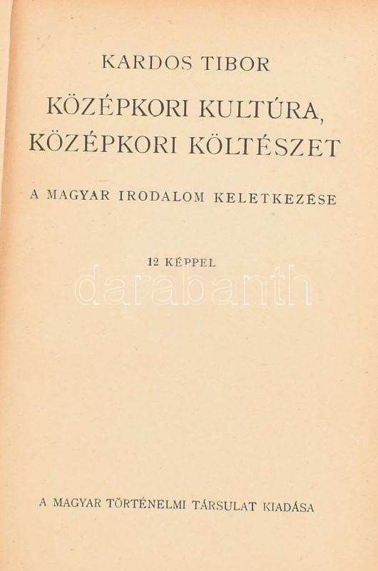 Kardos Tibor: Középkori kultúra középkori költészet. A magyar irodalom... https://www.darabanth.com/en/434-Online-auction/434.0/Books/Books-Other-rarities~1000021/Kardos-Tibor-Kozepkori-kultura-kozepkori-kolteszet-A-magyar-irodalom-keletkezese-12-keppe~II2808345