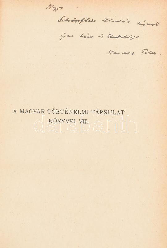Description: Kardos Tibor: Középkori kultúra középkori költészet. A magyar irodalom keletkezése 12 képpel. Bp., é.n. Magyar történelmi társulat. Kopott félvászon kötésben Schöpflin Aladárnak DEDIKÁLT példány.