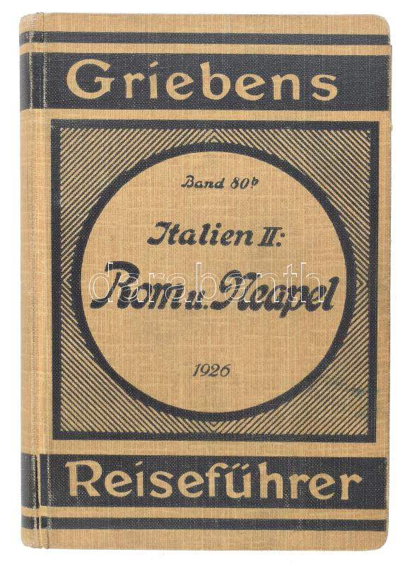 Italien II. Mittelitalien: Livorno, Siena, Perúgia, Rom u. Neapel. Griebens Reiseführer Band 80 b. Berlin, 1926, Grieben-Verlag Albert Goldschmidt. Kihajtható térképekkel. Német nyelven. Kiadói egészvászon-kötés, jó állapotban, a borítón minimális kopással.