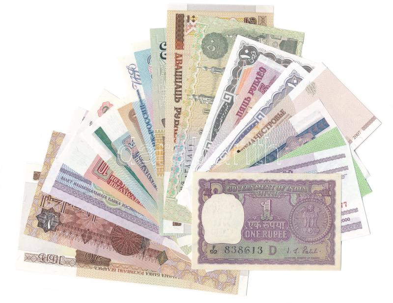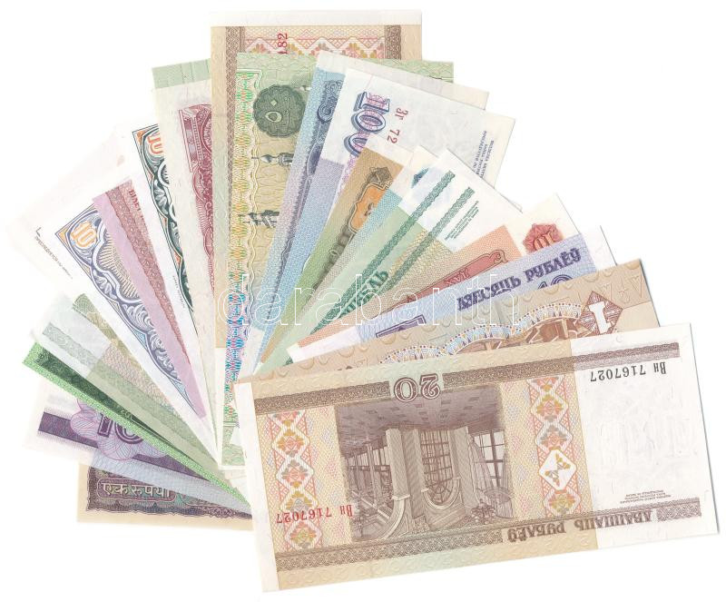 Description: 21 darabos külföldi bankjegy tétel, nagyrészt a volt szovjet tagköztársaságokból T:I- közte sarokhajlás