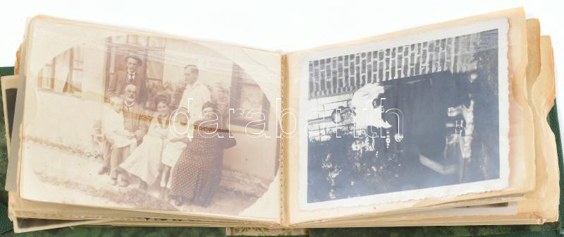 cca 1940-1960 Régi családi fotóalbum, kb. 26 fotóval, 8x6 és 9x6 cm kö...