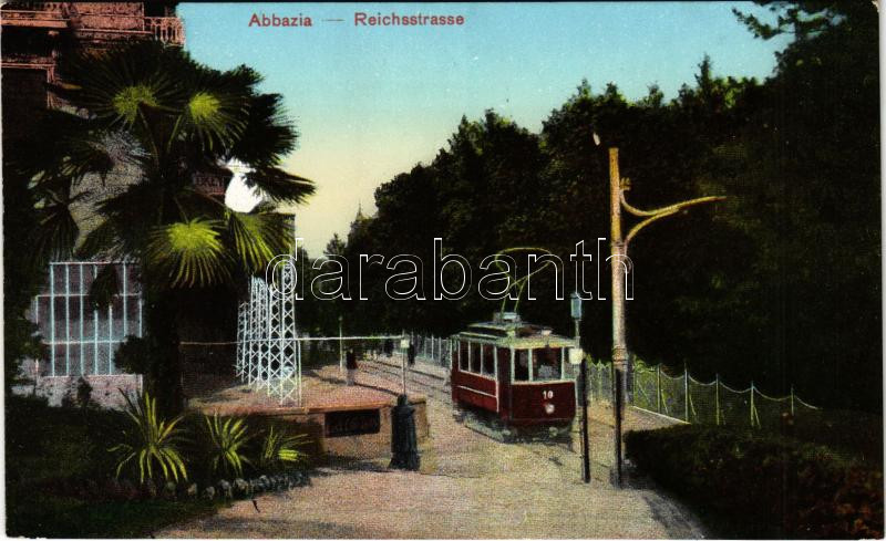 1909 Abbazia, Opatija; Reichsstrasse / street, tram / villamos